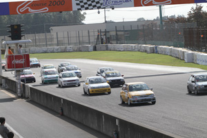 | 予選では、田中千夏選手がただ一人、1分10秒台をマークしてポールポジションを獲得。佐藤尚平選手が2番手、菅原芳武選手が3番手、ポイントリーダーの井上佳亮選手が4番手につけた。ポールポジションの田中選手は、好スタートを切ると、そのままレースをリード。追いすがる菅原選手を抑えきり、うれしい初優勝を達成した。2位に0.561秒差で菅原選手、3位に井上選手と続いた。 | ![]() クリーンなスタートが切られたTTC1400。ポールポジションの田中千夏選手が好スタートを決めトップに立つ。 |