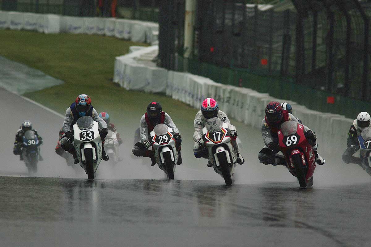 先頭で逃げるNo.4小池亜久里に対し、真後ろでプッシュしていたNo.2大木俊二が2周目の第1ヘアピンでアウト側の白線に乗り転倒。このアクシデントにより赤旗が提示され、仕切り直しのスタートでは小池がホールショットを決めて独走。そのまま小池は難しいフルウェット路面を走り切り、感激の初優勝を達成した。No.75秋山龍生とNo.9高野健がそれぞれ単独の2位と3位でゴールする一方、4位争いはNo.42浅見暢次郎とNo.6石倉翔の一騎打ち。この勝負は4周目に前へ出た石倉が制した。5名による大バトルとなった6位争いはNo.96田中良、No.62大崎雅弘、No.1市橋貴志、No.7天野邦博、No.30佐藤太哉の順で決着した。