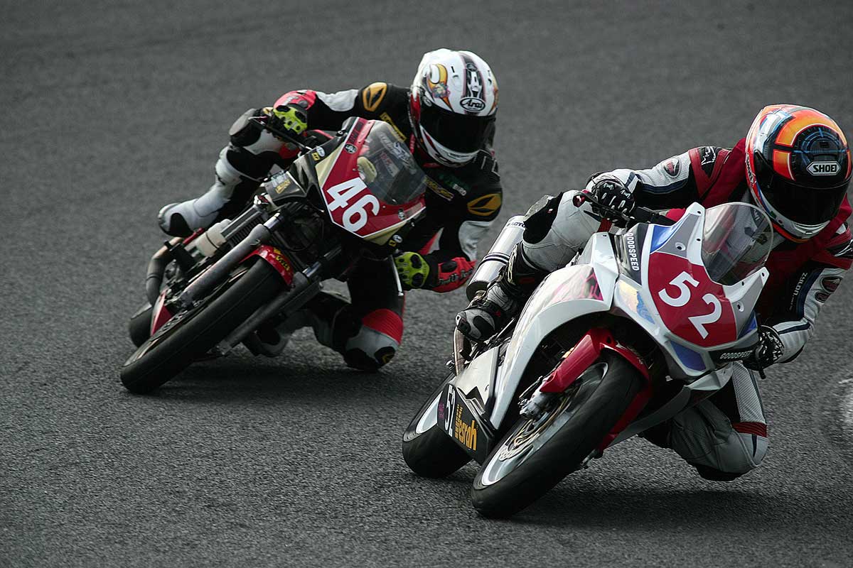 No.28柿澤駿矢がホールショットを決めて先行し、ほどなく独走に持ち込んだ。柿澤はその後も一人旅を続けながら速いペースをキープし、終盤には卒業タイムを上回るファステストラップをマーク。そのまま2位以下に5秒以上のリードを築いて嬉しい優勝を遂げた。No.46浅野啓治が単独の2位で続き、No.87水口翔一も単独の3位でゴール。一方、序盤はNo.22井口英紀、No.7浅野毅、No.99神保雄人らの集団だった4位争いは、5周目に集団の前に出た神保が4位となり、続いた井口が5位。400ccマシンで参戦した浅野毅はライバルとは明らかに異なる高いコーナーリングスピードを披露して6位でゴールと健闘した。