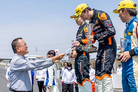 優勝者には筑波サーキットから10万円の賞金ボードが手渡される