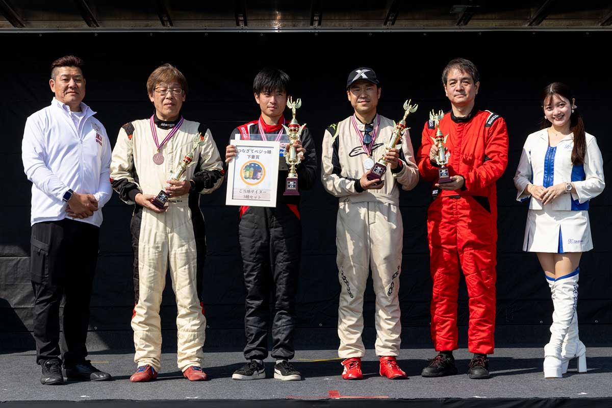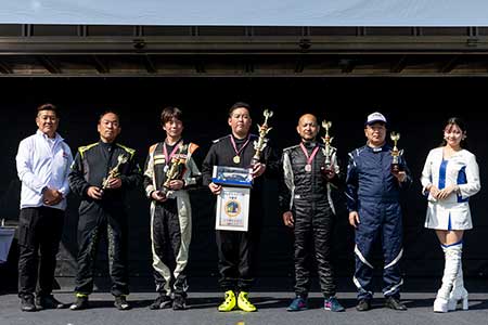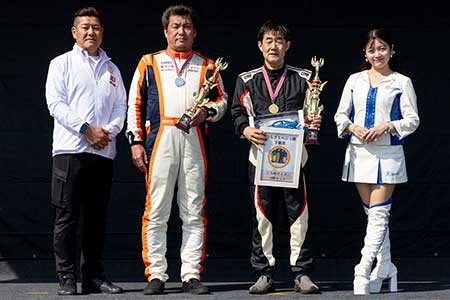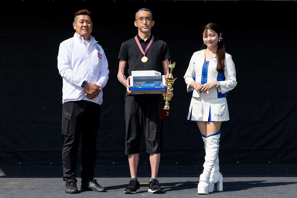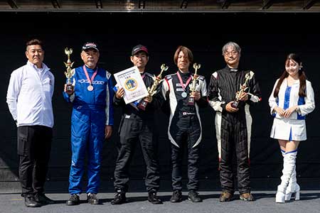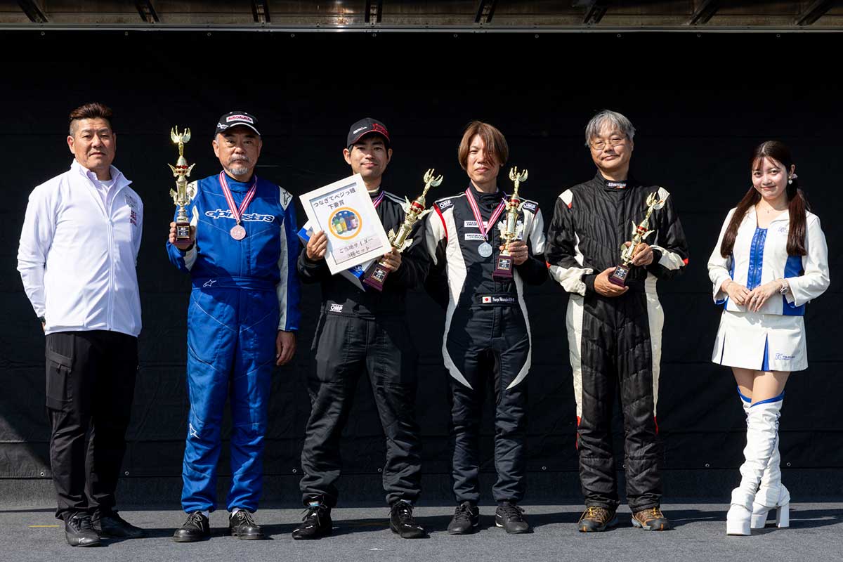 Z勢が4台集結したCT3クラスは、長年参戦する秋本拓自選手の呼びかけで実現した。序盤、リードしたのは伊澤竜選手。いち早く1分3秒台前半をマークして秋本選手と関根選手を抑え込む。ここからはクリアラップの奪い合い。そんな中で秋本選手が3秒137を記録しターゲットタイムを塗り替える。第2ヒートは路面温度が17℃も上昇し、この中でタイムを伸ばすのは不可能と思われたが、秋本選手は唯一タイムを更新する1分3秒080を記録して見事優勝を手にした。秋本選手は「皆集まってくれて本当に良かったです。タイムは2本目の方が出たんですが、この台数はちょっときつかったですね。筑波は我慢するところを我慢して、踏むべきところできちんと踏むのがポイントですね。Z仲間が今年は一緒に参戦してくれるとのこと。持ちタイムは僕より速い人もいるので、しっかり上位に入ってシリーズを狙いたいと思います」と今大会を振り返った。