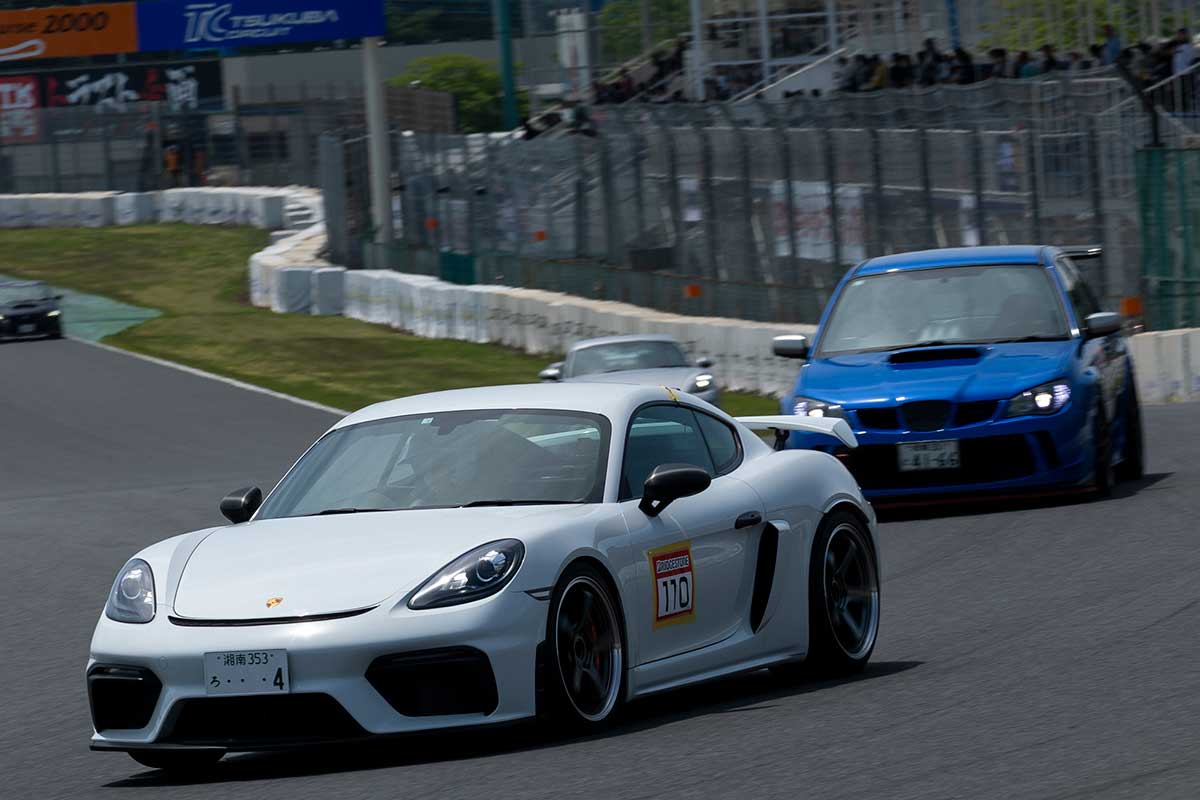 2024年筑波シリーズチャンピオンの森田正穂選手とJAFカップウィナー松代耕二選手という2台のポルシェ718ケイマンGT4の争いが激しいこのクラス。3月に開催されたJAFカップは松代選手が従来のコースレコードを塗り替えて勝利をおさめたが、その悔しさもあってか、森田選手がブレーキの容量をアップして開幕戦に臨んできた。