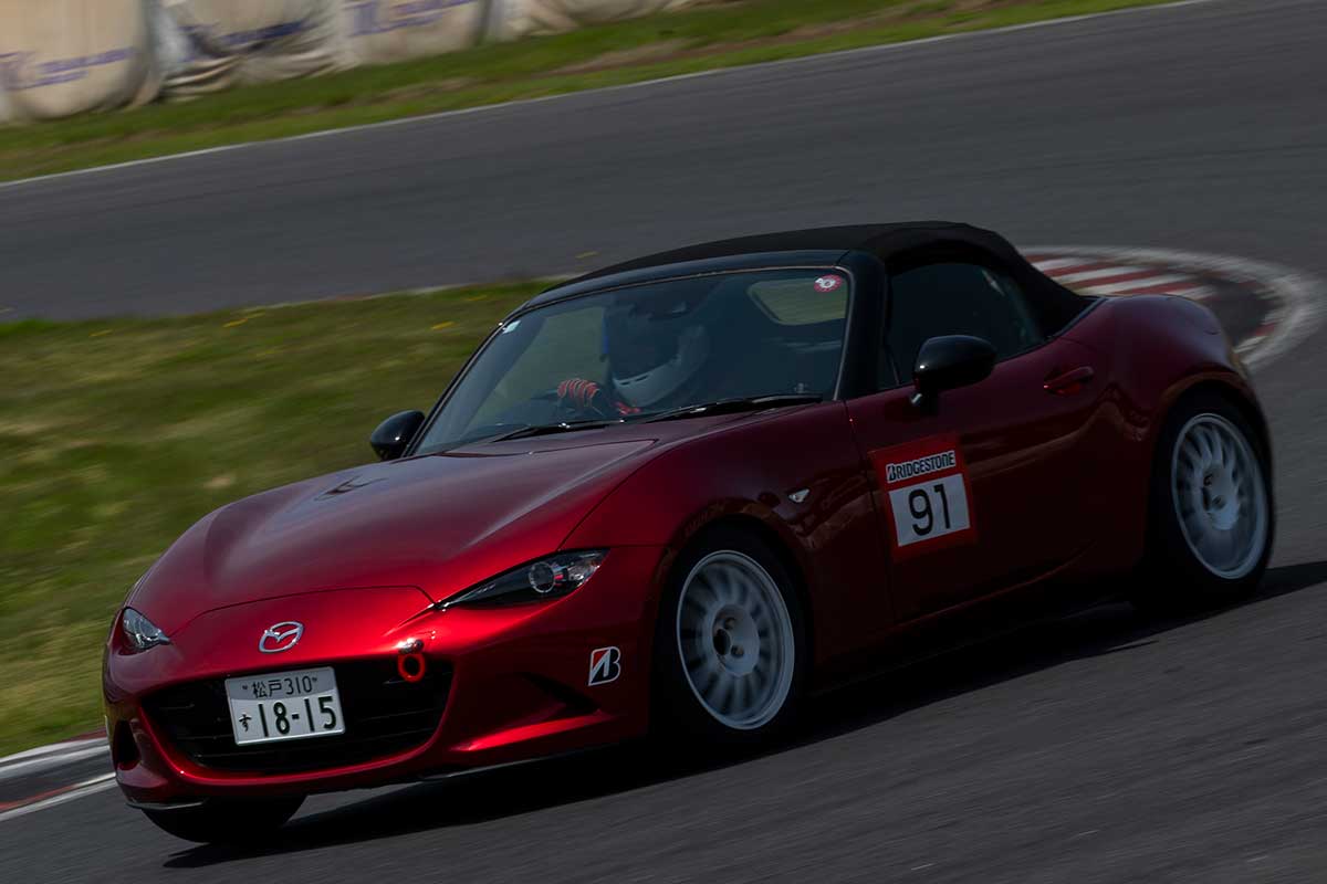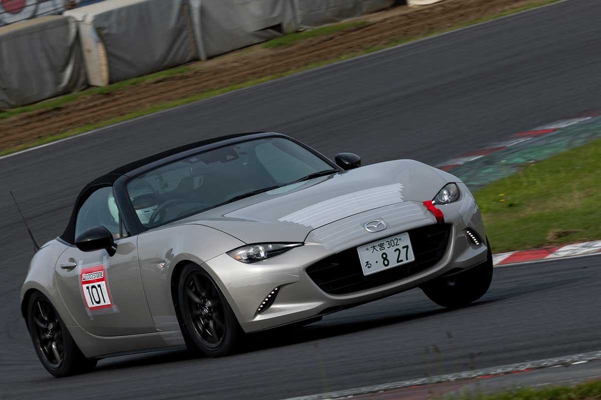 CT7クラスも2台のロードスターの一騎打ちとなった。まず先陣を切ったのは坂本大知選手。早々にタイムを上げ、格上のマシンを前に送りながらタイムを残していく。3周目には13秒台を記録。しかし、ここにぴったりと張り付くようにタイムを上げてきたのは岡野守宏選手だった。コンマ差で常に坂本選手を追いかける岡野選手。5周目には坂本選手を交わしクラストップに躍り出る。そんな岡野選手は続く6周目に一気にタイムを上げ11秒台をマーク。このタイムで勝負がつき岡野選手が開幕戦ウィナーとなった。「JAF公認競技としてのサーキットトライアルはじめてだったんですが、無事優勝できて良かったです。意外とクリアがとれなくてタイムは満足のいくもではありませんでした。ブリヂストンのRE71RSをはじめて装着したんですが、グリップを随分余らせてしまいました。今シーズンは全戦参戦予定です」と岡野選手。続く第2戦も期待がかかる。