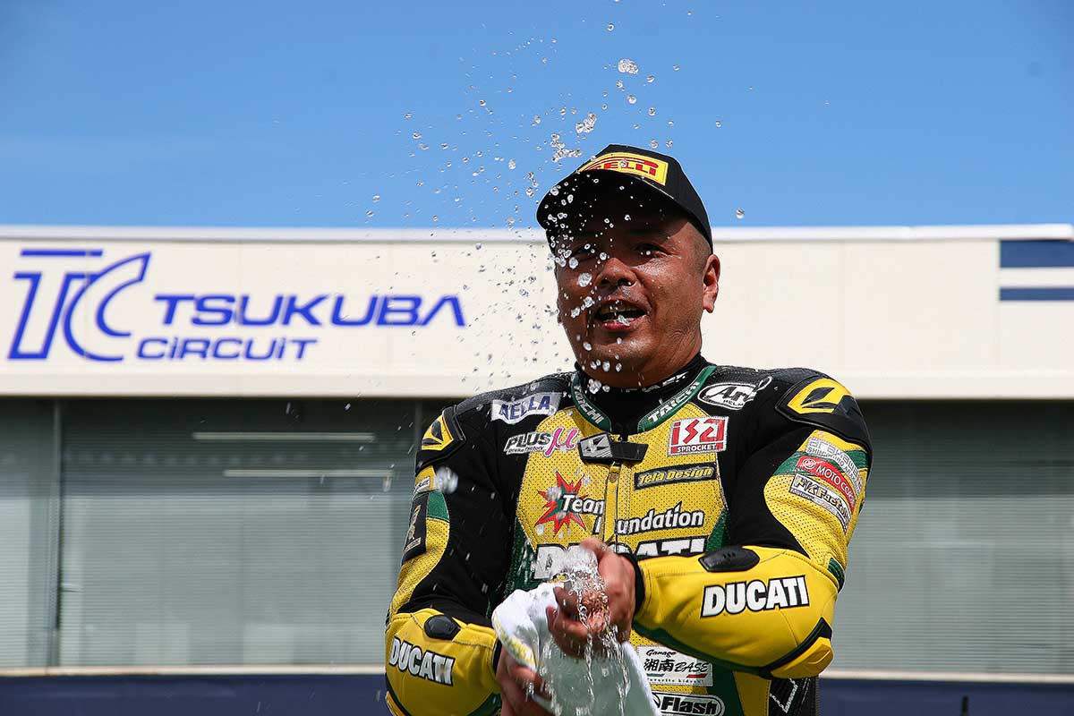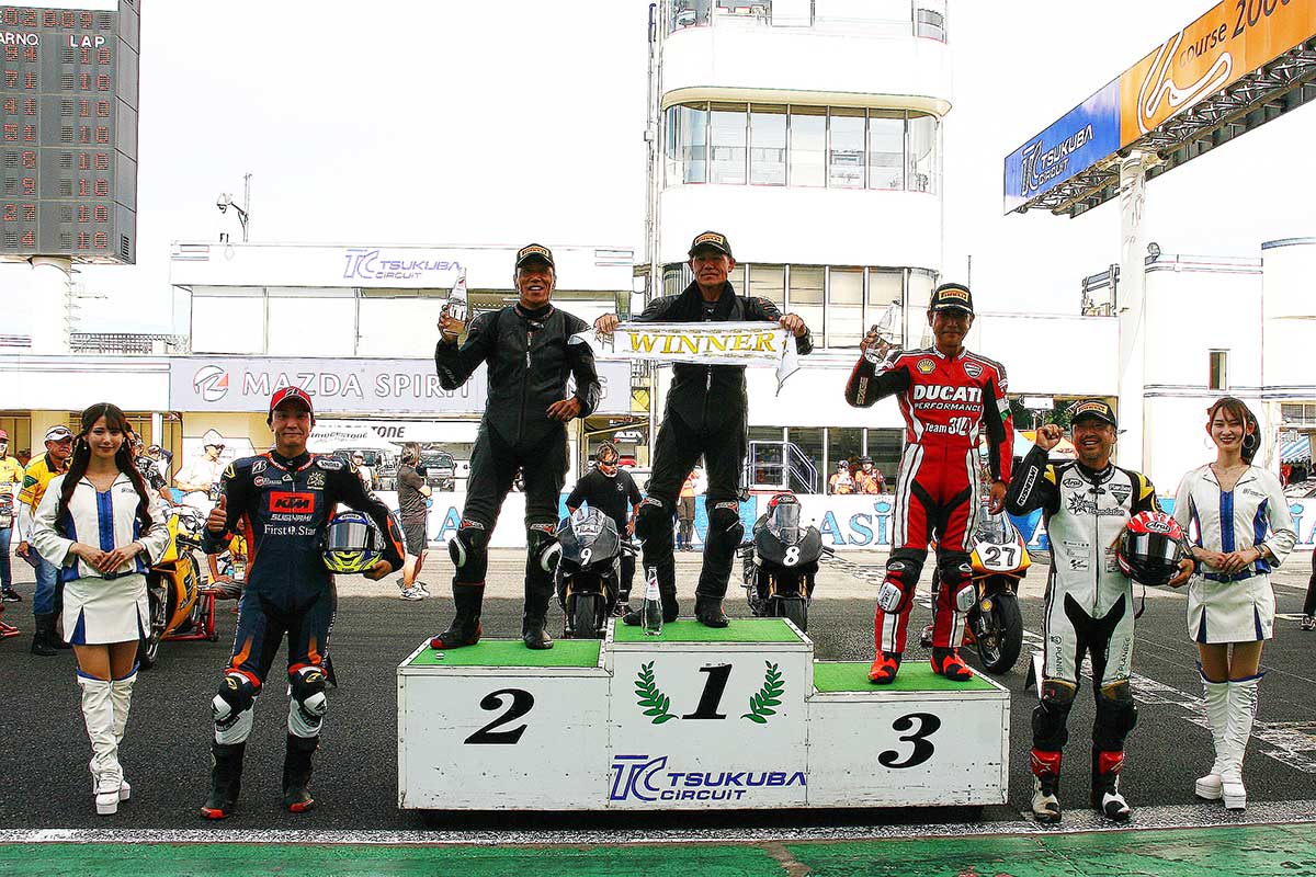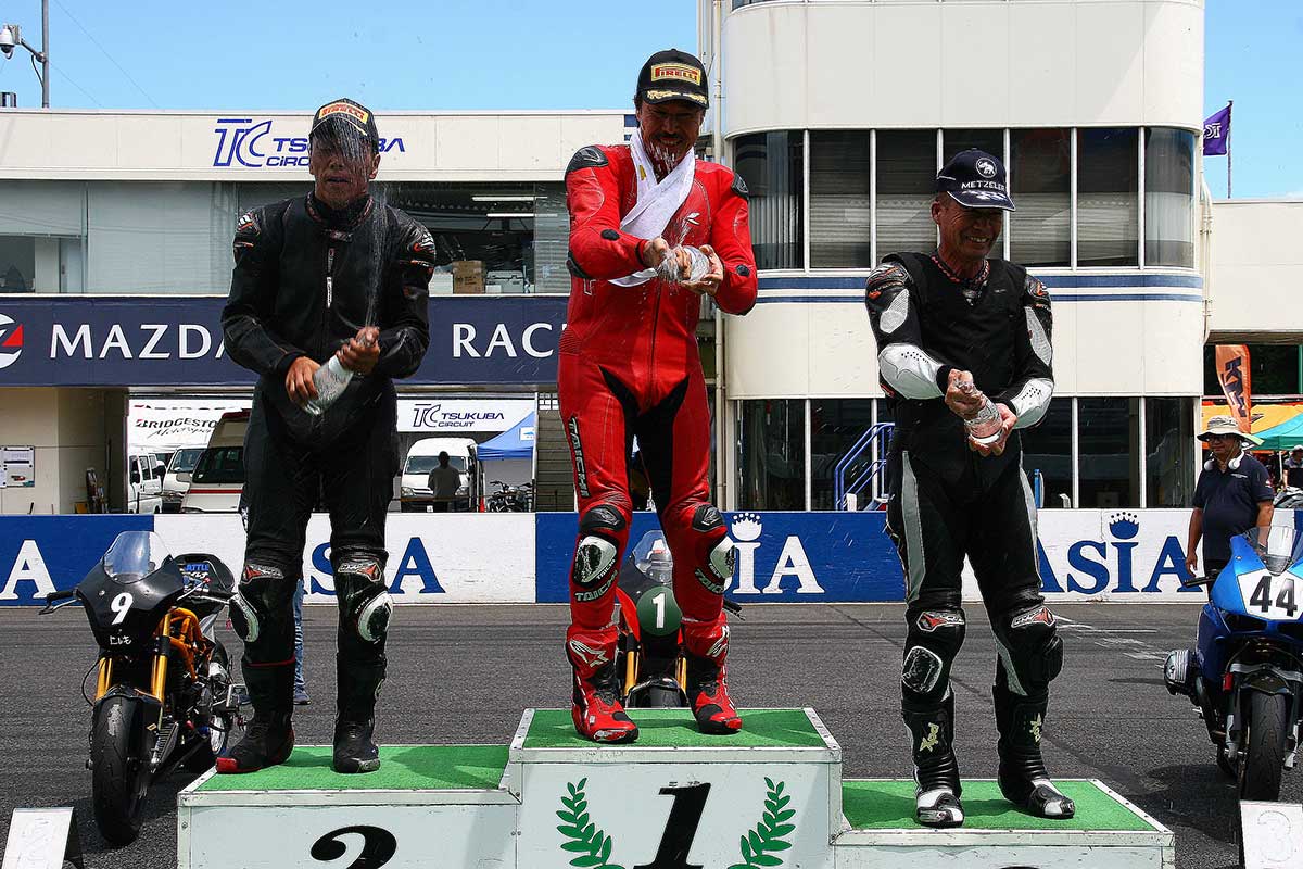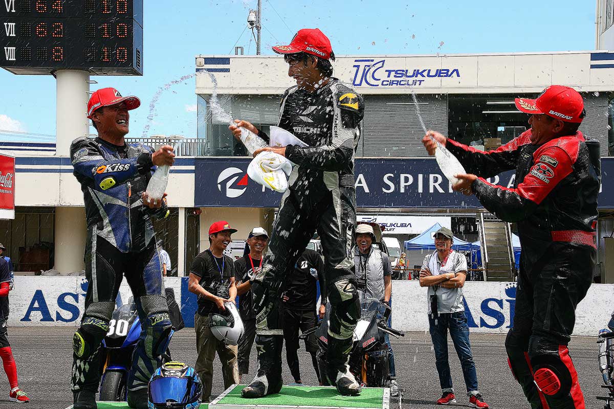 Champagne Fight Report MENU 決勝レポート シャンパンファイト レースアルバム スターティンググリッド 筑波TT'sスマイル 04/05 in APRIL 07/19 in JULY 11/15 in NOVEMBER オフィシャルスタッフ レースレポート一覧 筑波ツーリスト・トロフィーTOP 2025 筑波ツーリスト・トロフィー in JULY シャンパンファイトとポディウム。それはレースで好成績を収めた者のみが許される栄えある特別な場所。シャンパンファイトで弾け、表彰台で誇らしげにするレーシングライダーたちの堂々たる雄姿を紹介します。 NS2 1石戸谷稔 2伊藤祐太 3野村勝 4佐藤立樹 5小島秀明 6宮腰良彦 NM 1藤代義正 2保坂健 3浅野啓治 Battle Of The Twins(ACT) 1波田桂治郎 2西田敏郎 3冨岡春彦 N250F 1近藤秀明 NT2 1橋本卓哉 2尾張良介 3玉利幸治 4小澤光二郎 5小室直久 6佐藤聖 MT1 1田中建 NB 1山本裕章 2日吉健夫 3堀雄大 Frontier2 1楠隼人 2大森竜馬 3小堀誠 4岡﨑雅之 5安藤志朗 6大間雄飛 KTM 390 CUP 390ノーマルファン 1臼倉善則 2長岡健司 3斉藤知宏 KTM 390 CUP 390カスタムチャレンジ 1長尾秀隆 2吉井俊忠 3三田晋 KTM390CUPカスタムエキスパート 1植村哲也 2武田誠浩 3磯雅幸 MIP 1竹田敏彦 Battle Of The Twins(WCT) 1氏家康典 2西田敏郎 3舛井宗一朗 賞典外山口辰也 賞典外新庄雅浩