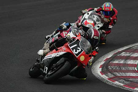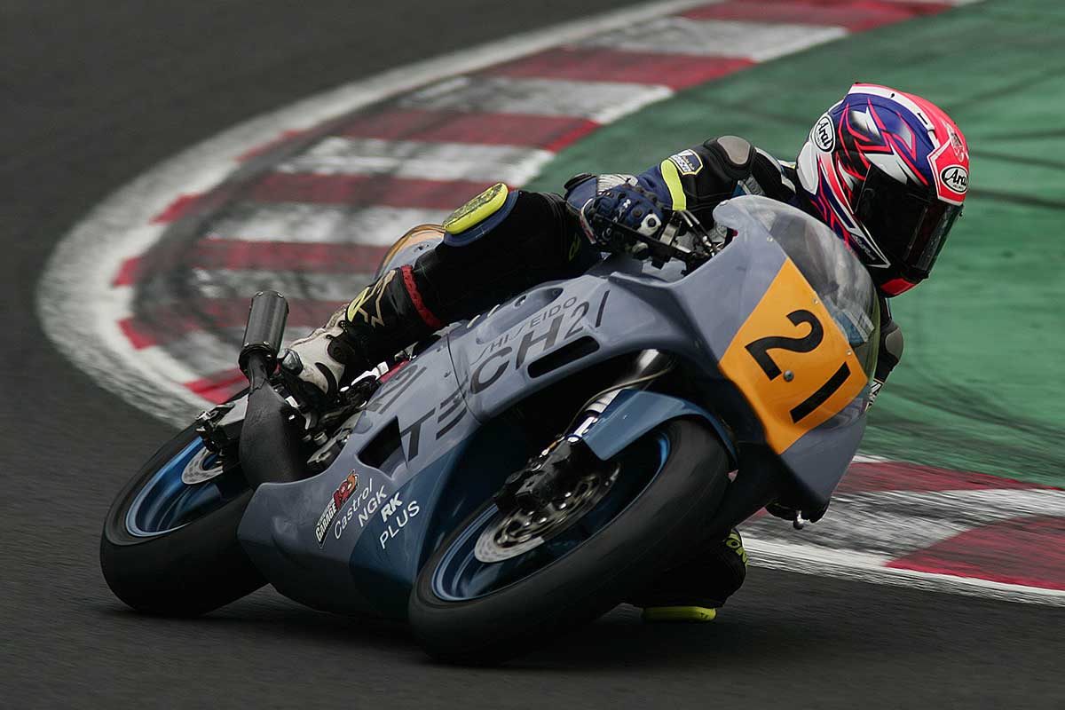 路面は半ドライでフロントロー3名を含む5名がレインタイヤを装着した。No.51松田光市がホールショットを決め、No.34三好真司、No.69澤田一星と続く。難しい路面に苦戦するライバルを尻目にレインタイヤの松田は2周目にファステストラップを記録してリードを広げる。一方、1周目を4位と出遅れたNo.58神拓也は出だしのペースメイクに苦しんだが3周目に2位へ浮上して松田を追う。ウェット路面で慎重な走行を強いられたスリック勢に対しレイン組は速いペースで周回を重ね、TC-Fの松田が優勝。2位の神はST(Nat)優勝を手にし、三好までのトップ3はレインタイヤ組。以下No.6渡辺正起、No.3山本裕章の順でゴールした。