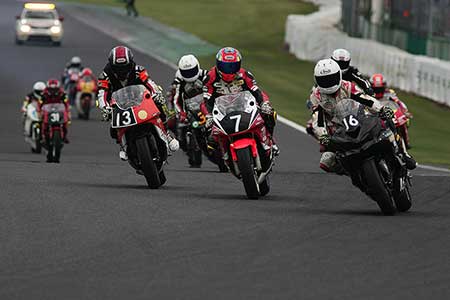 No.16山岡陸がホールショットを決めて最終戦の口火を切った。対してNo.13田中稔一が先頭に立って1周目を終了。ここから田中とNo.7浅野毅がトップ争いを展開した。そして中盤までにNo.99池田宗敏が追いつき優勝争いは3名となる。このうち最も余力を残していたのは池田で、しばらく3番手で様子を見ると10周目の1コーナーで浅野を、さらに最終コーナー立ち上がりで田中を攻略してトップに浮上。池田はそのまま後続を引き離し、3秒半のリードを築いてポールtoウィンを達成した。田中が続き、浅野は3位でTC400の年間王者を獲得。山岡、No.9西田敏郎と続き、最終周に6位へ浮上したNo.21遠藤賢治がTC250優勝を手にした。