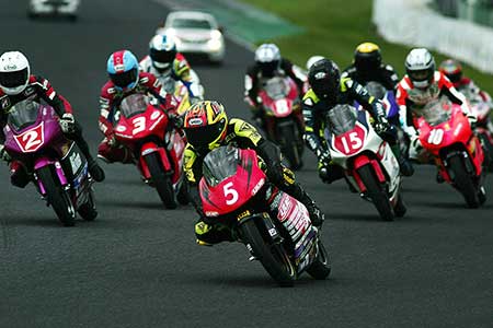 No.31田島涼介がスタート時にフルウェットの路面でうまくホイールスピンを抑えてホールショットを奪取した。対してポールシッターのNo.41長谷川雷久は直後のS字で躊躇せず田島のインに飛び込みトップに浮上。そこから後続を引き離して15秒近いリードを築いてポールtoウィンを達成した。2位争いは対照的に4名による接近戦となり、田島、No.71中山結互、No.69大澤一欽、No.89栗本志能武らが度々順位を入れ替える。このうち中山は6周目の1コーナーで集団の先頭に立ち、2位となってNatクラスの優勝とチャンピオンを手にした。以下栗本、大澤の順でゴールしたが、田島は12周目の第2ヘアピンで転倒して無念のリタイヤとなった。