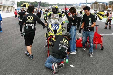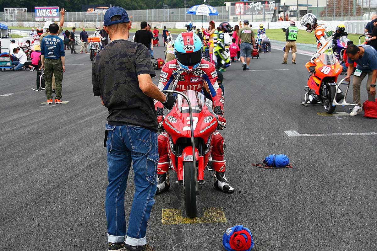 Starting Grid Report MENU 決勝レポート シャンパンファイト レースアルバム スターティンググリッド 03/08第1戦 06/22第2戦 09/06第3戦 10/04第4戦 オフィシャルスタッフ レースレポート一覧 筑波ロードレース選手権TOP 2025筑波ロードレース選手権 第4戦 スターティンググリッドではさまざまな表情が交差する。リラックスしてチームとの記念撮影に収まる者もいればライバルとは決して目を合わせず集中力を高める者もいる。スターティンググリッドへようこそ。さあレースが始まります!