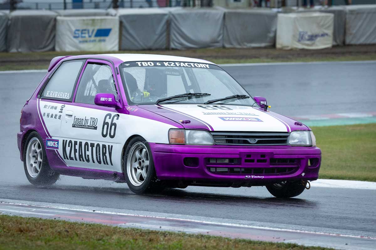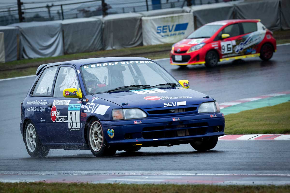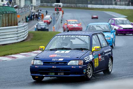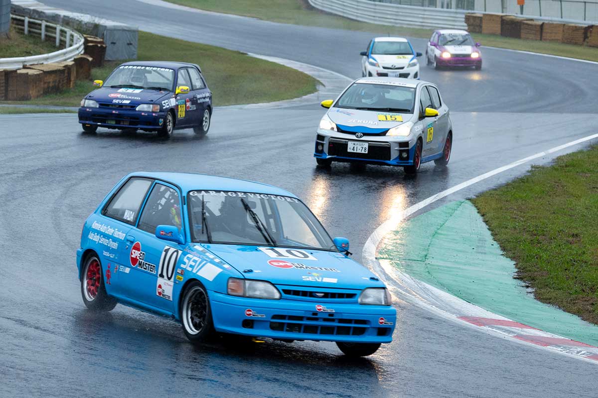 前日の雨が残る中、ダンプコンディションで行われた公式予選からドライ路面へと変化した決勝。それでもイン側奇数列はまだ路面が湿っており、アウト側偶数列はドライというアンバランスな状態。