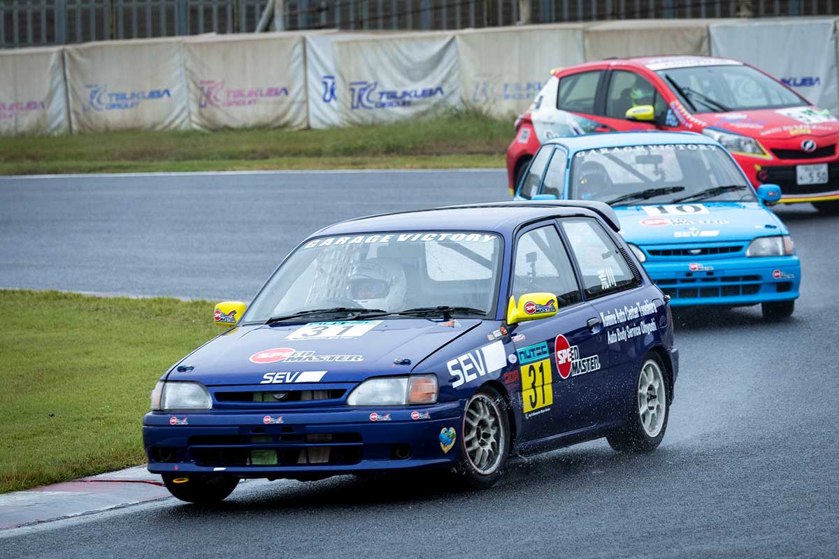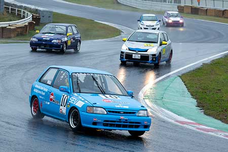 公式予選はコースイン直後に39号車山本純一選手の車両にオイル漏れの警告が飛ばされる。そんな不安が残る路面の中、最初にアタックをしかけたのは荒川智弘選手。他の選手より1秒以上速いラップを刻んでタイヤを温める。すると予選中盤、ベテラン東源選手が第2ヘアピンでコースオフ。クラッシュパッドと衝突してしまう。自走して戻れたことで赤旗が提示されることはなかったが不穏な空気感にサーキットがざわつく。すると和田選手が間隙を縫って11秒台を記録しトップへ。このまま予選終了かと思われたが、最後の最後で荒川選手が和田選手をコンマ6近く上回るタイムを記録し逆転。2位には和田選手。3位にはタイトルを争う河原選手が11秒台を記録しくらいついた。