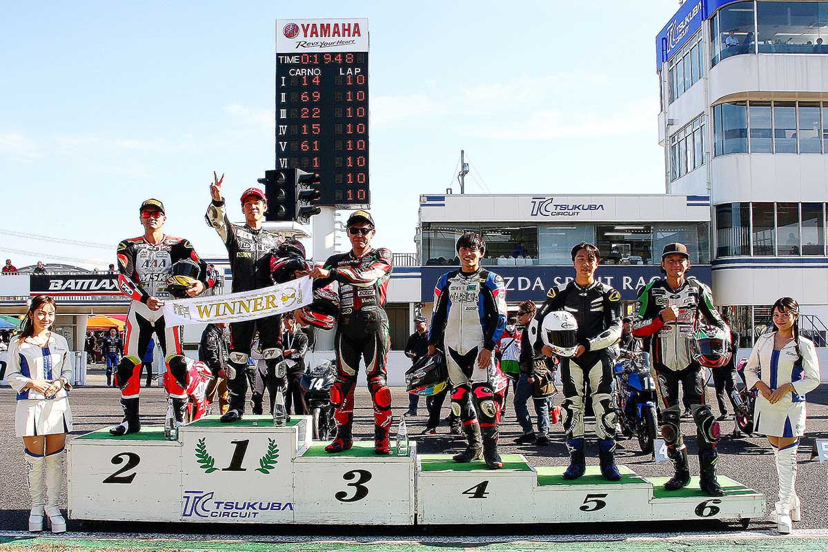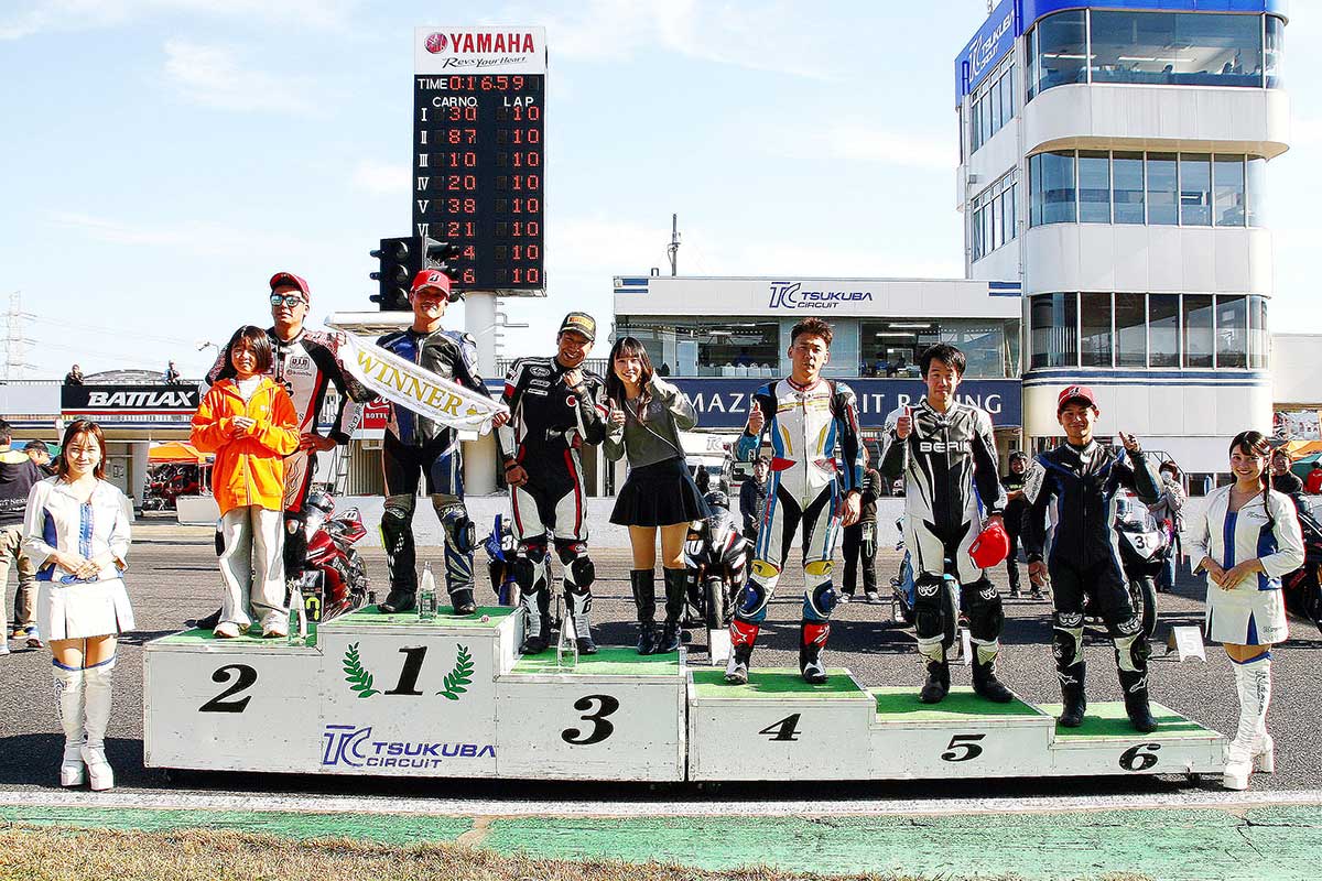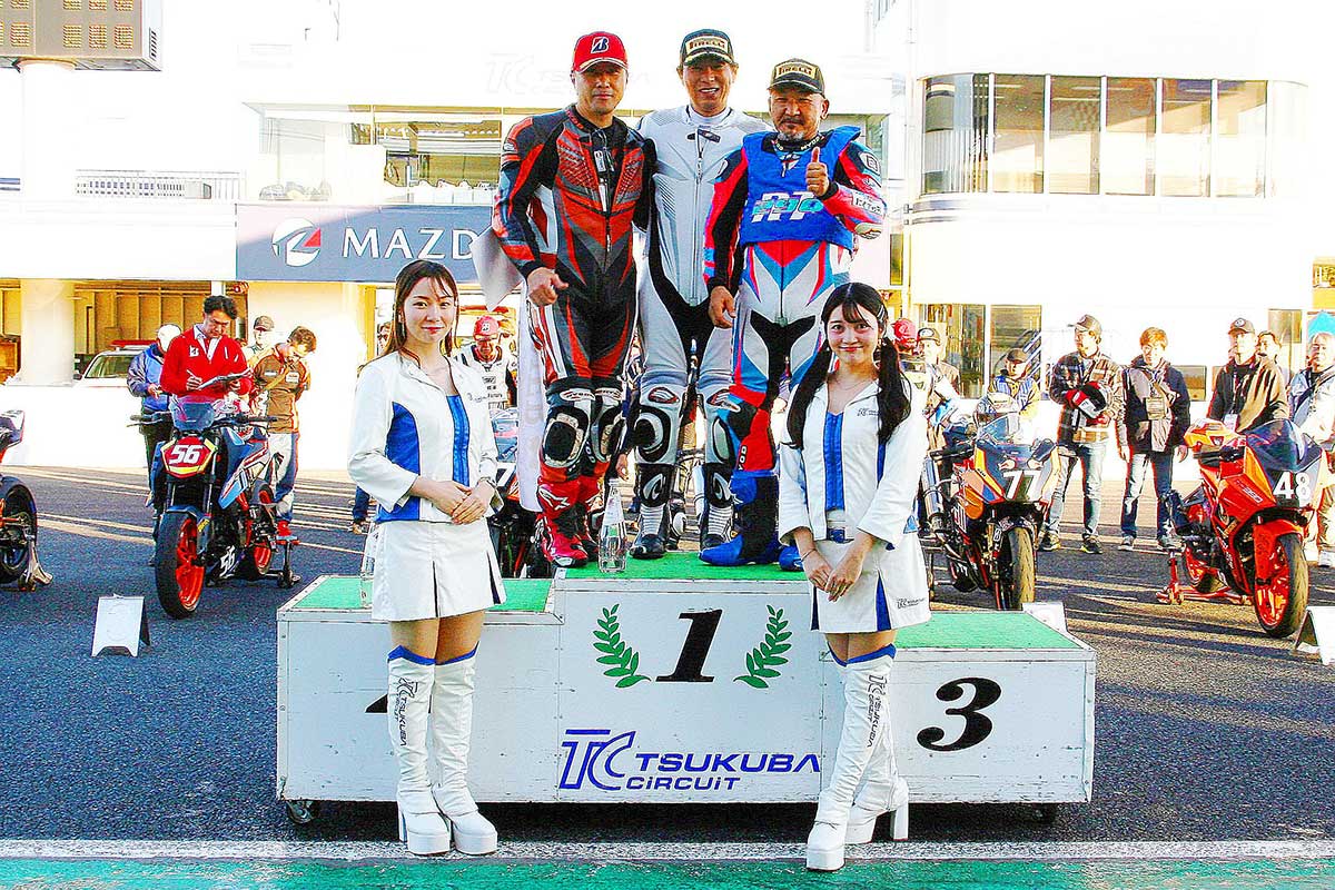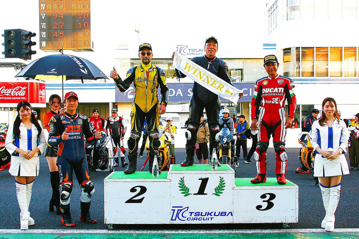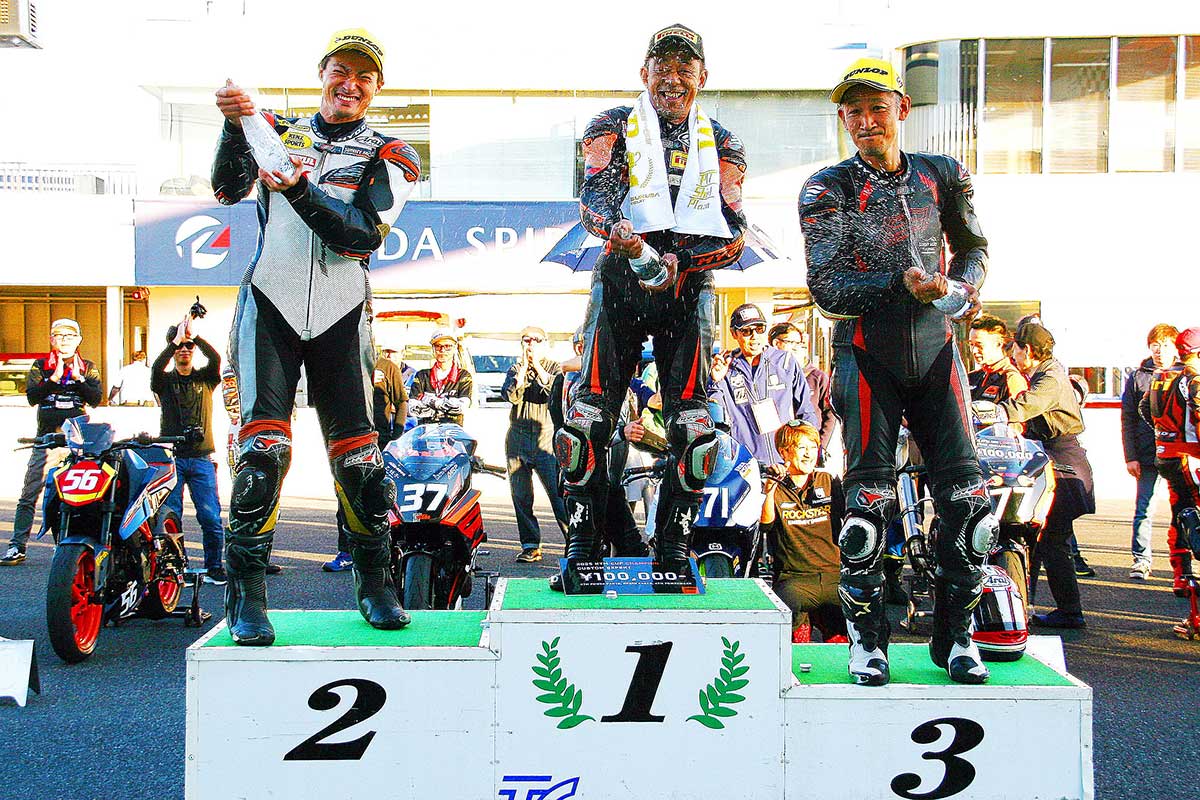 Champagne Fight Report MENU 決勝レポート シャンパンファイト レースアルバム スターティンググリッド 筑波TT'sスマイル 04/05 in APRIL 07/19 in JULY 11/15 in NOVEMBER オフィシャルスタッフ レースレポート一覧 筑波ツーリスト・トロフィーTOP 2025 筑波ツーリスト・トロフィー in NOVEMBER シャンパンファイトとポディウム。それはレースで好成績を収めた者のみが許される栄えある特別な場所。シャンパンファイトで弾け、表彰台で誇らしげにするレーシングライダーたちの堂々たる雄姿を紹介します。 NS2 1石戸谷稔 2薄井徹也 3佐藤立樹 4池田伶人 5栗原文太郎 6野村勝 NM 1保坂健 2水口翔一 3反町瑞希 4富樫崇郎 5吉田龍生 6伊東優樹 MDT 1古瀬文雄 Battle Of The Twins(ACT) 1石塚孝雄 2波田桂治郎 3西田敏郎 N250F/NS1 N250F池永龍哉 NS1植村哲也 NT2 1掛川啓一 2橋本卓哉 3尾張良介 NB 1松浦寛 2笹尾直邦 3林龍斗 Frontier2 1小堀誠 2岡﨑雅之 3安藤志朗 4小宮雄一 5金子聖希 6三木学 KTM390CUPノーマルファン 1臼倉善則 2長岡健司 3斉藤知宏 KTM390CUPカスタムチャレンジ 1吉井俊忠 2中林茂喜 3長尾秀隆 KTM390CUPカスタムエキスパート 1植村哲也 2佐久間咲斗 3小室旭 MIP 1砂塚知男 Battle Of The Twins(WCT) 1西田敏郎 2名越公一 3舛井宗一朗 賞典外新庄雅浩