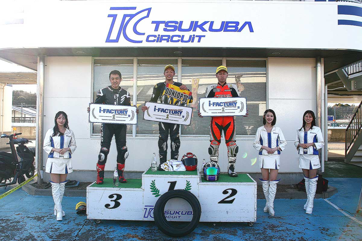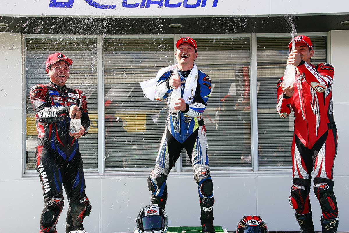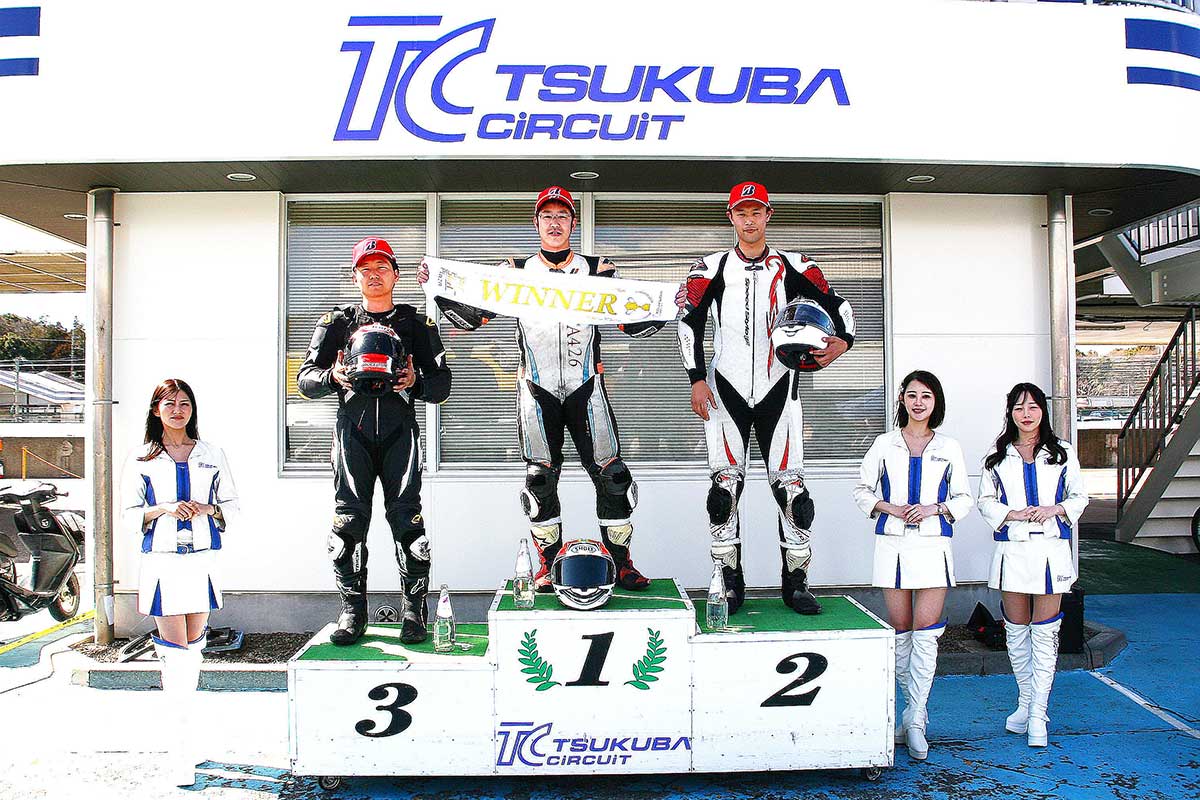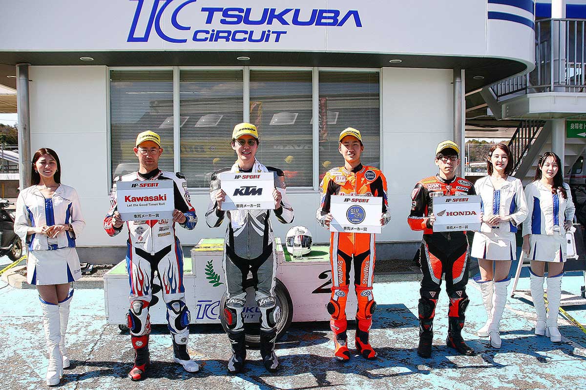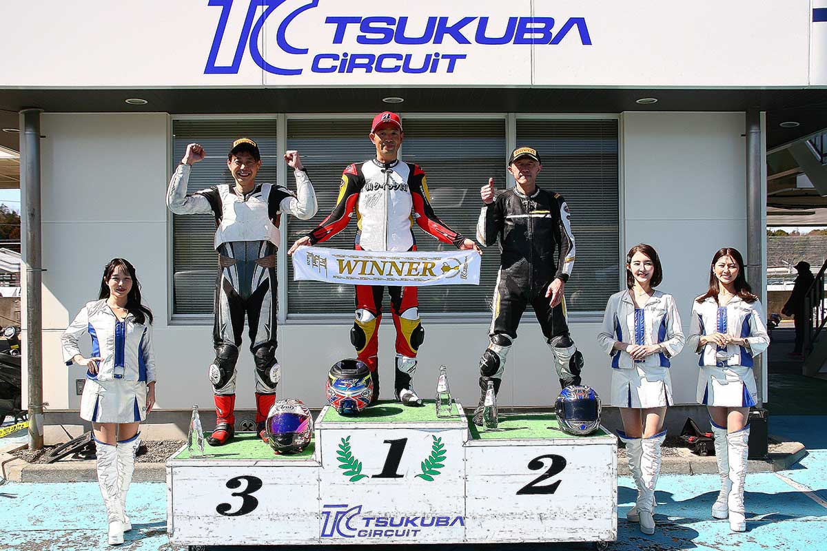 Champagne Fight Report MENU 決勝レポート シャンパンファイト レースアルバム スターティンググリッド 03/14第1戦 07/25第2戦 09/12第3戦 10/10第4戦 オフィシャルスタッフ レースレポート一覧 筑波ロードレース選手権TOP 2026筑波ロードレース選手権 第1戦 シャンパンファイトとポディウム。それはレースで好成績を収めた者のみが許される栄えある特別な場所。シャンパンファイトで弾け、表彰台で誇らしげにするレーシングライダーたちの堂々たる雄姿を紹介します。 TC400 1浅野毅 3山岡陸 2池田宗敏 TC250 1石井直 3松田明満 2白崎達也 CBR250RR Dream CUP 1山内大介 3矢澤亮 2青山和人 JP-SPORT(I) 1木村思音 JP-SPORT(N) 1遠藤慈生 3片山洸司 2小川大樹 JP-SPORT(N) メーカー賞表彰 カワサキ賞片山洸司 KTM賞遠藤慈生 ヤマハ賞小川大樹 ホンダ賞山崎聡太 ST600(I) 1武田数馬 3遠藤晃慶 2伊藤翼 ST600(N) 1福地直紀 3石川樹 2柿澤駿矢 TC-Formula 1山中正之 3相馬大介 2相川亨 ST1000(N) 1倉垣福太郎 2植木武 J-GP3/NSF250R challenge 1中山結互 3蘇勇太 2吉原寅之介 S80 1市橋貴志 3浜野義和 2石倉翔 CBR250R Dream CUP 1山﨑凌雅 3湯浅宗史 2菊池翔太