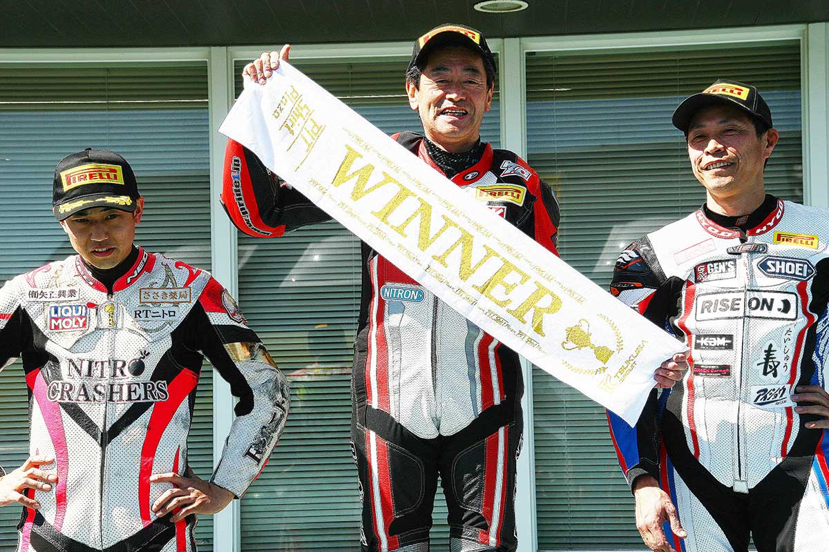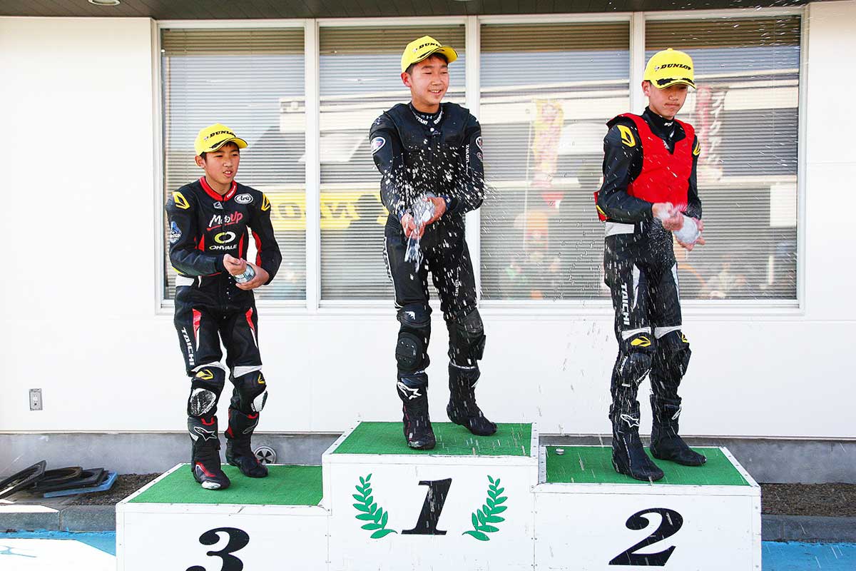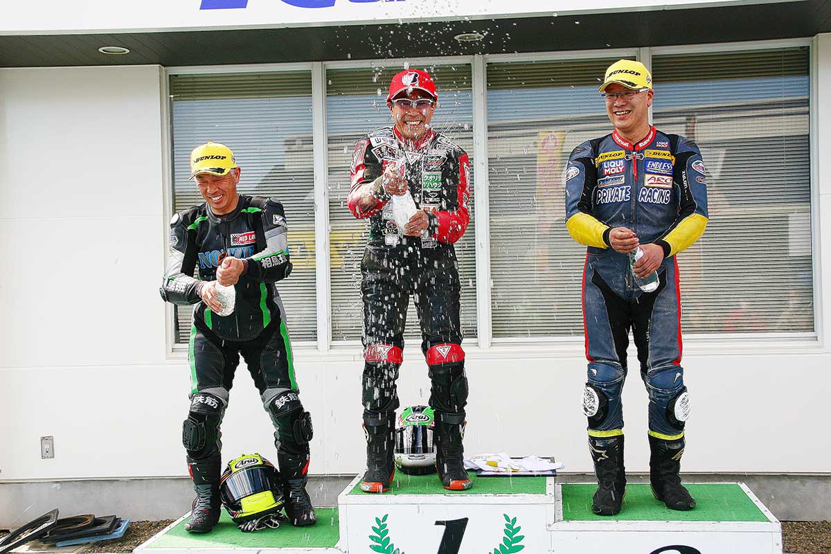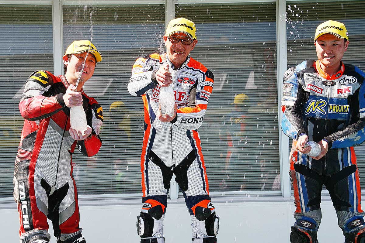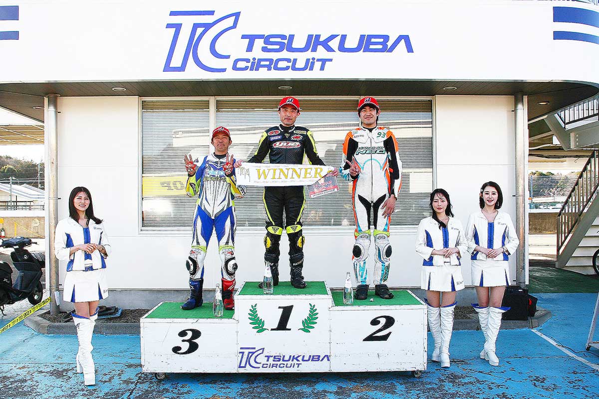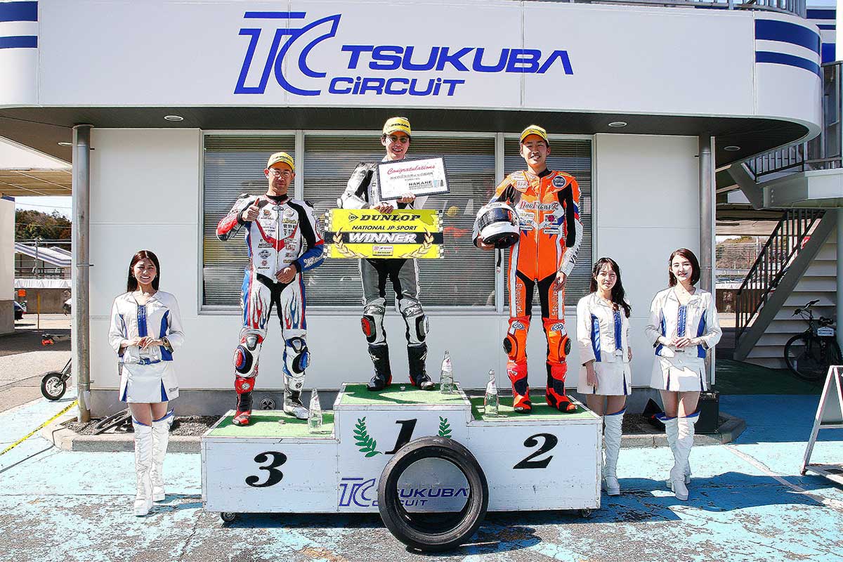 Champagne Fight Report MENU 決勝レポート シャンパンファイト レースアルバム スターティンググリッド 03/14第1戦 07/25第2戦 09/12第3戦 10/10第4戦 オフィシャルスタッフ レースレポート一覧 筑波ロードレース選手権TOP 2026筑波ロードレース選手権 第1戦 シャンパンファイトとポディウム。それはレースで好成績を収めた者のみが許される栄えある特別な場所。シャンパンファイトで弾け、表彰台で誇らしげにするレーシングライダーたちの堂々たる雄姿を紹介します。 TC400 1浅野毅 3山岡陸 2池田宗敏 TC250 1石井直 3松田明満 2白崎達也 CBR250RR Dream CUP 1山内大介 3矢澤亮 2青山和人 JP-SPORT(I) 1木村思音 JP-SPORT(N) 1遠藤慈生 3片山洸司 2小川大樹 JP-SPORT(N) メーカー賞表彰 カワサキ賞片山洸司 KTM賞遠藤慈生 ヤマハ賞小川大樹 ホンダ賞山崎聡太 ST600(I) 1武田数馬 3遠藤晃慶 2伊藤翼 ST600(N) 1福地直紀 3石川樹 2柿澤駿矢 TC-Formula 1山中正之 3相馬大介 2相川亨 ST1000(N) 1倉垣福太郎 2植木武 J-GP3/NSF250R challenge 1中山結互 3蘇勇太 2吉原寅之介 S80 1市橋貴志 3浜野義和 2石倉翔 CBR250R Dream CUP 1山﨑凌雅 3湯浅宗史 2菊池翔太