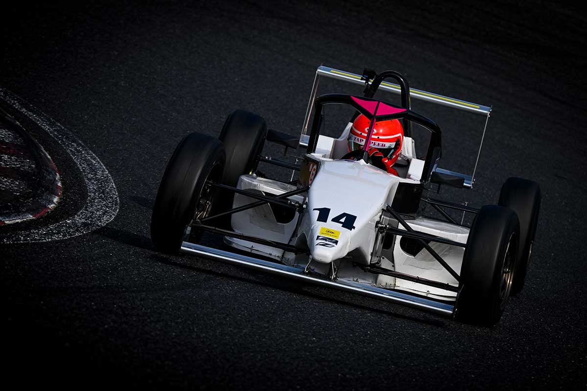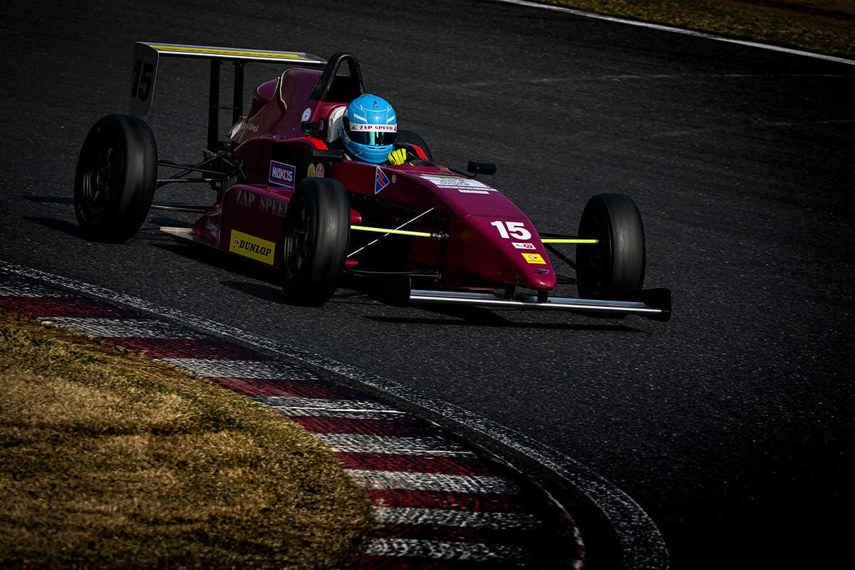 昨シーズンこのクラスを完全に制圧したファーストガレージ。今年はランキング3位だった切替悠喜選手がチャンピオンを狙う。今大会はFJ1500車両の開発を兼ねて参戦を予定していたが、パーツのデリバリーが間に合わず残念ながら欠場となった同チームの佐々木孝太選手は「今年はドライバーも総入れ替えに近く、新規参戦する選手たちは4輪経験がほぼ未経験な選手も多いです。今年は特に育成にも力を入れています。初々しい感じですね。実績のある切替悠喜選手がチームを引っ張っていってくれると思います」とコメント。しかし、予選は大方の予想とは裏腹にZAPスピードの鈴木大翔選手が序盤からリード。切替選手がこれを追いかけるが鈴木選手のタイムを上回ることができない。終盤に入り同じくZAPの相田有羽音選手が2番手のタイムを叩き出しZAPがワンツーに!鈴木選手はさらに後続を突き放す58秒119を記録し今シーズン初ポールを獲得した!!