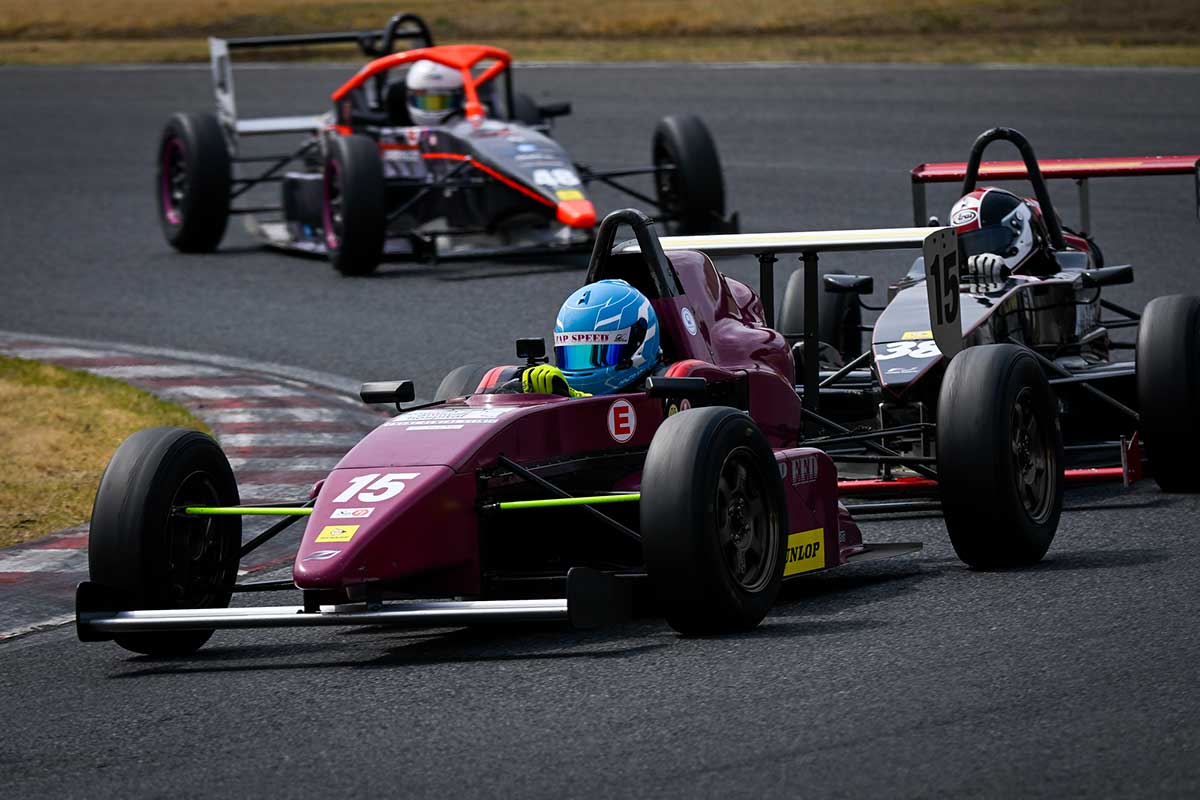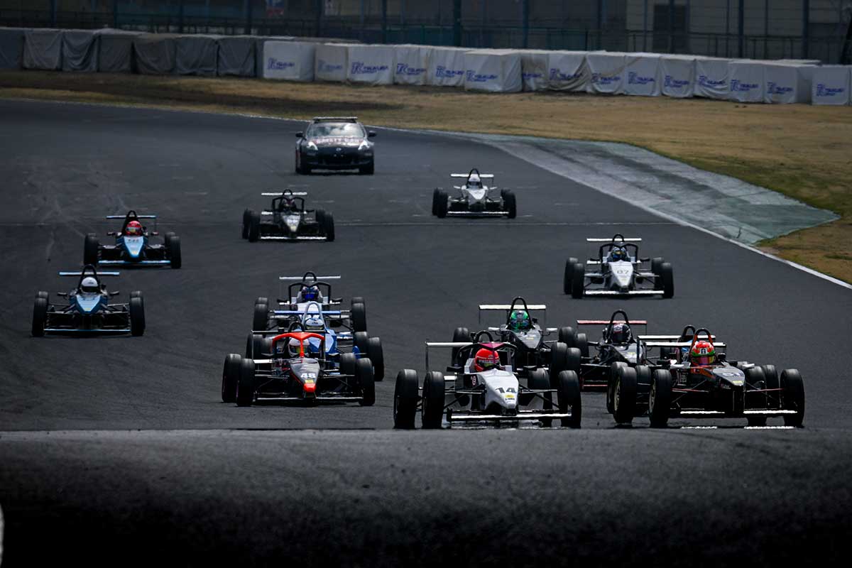 ポールポジションはFJ1500だが2番手、3番手はS-FJマシン。スタートから順位変動があったのは2番手相田選手と3番手切替選手。両者とも蹴り出しはまずまず。しかし、相田選手がまさかのシフトミス。これで切替選手がクラストップへ!その後ろでは4番手畠山選手を村上太晟選手がオーバーテイク。さらに村上選手は第1ヘアピンで3番手の相田選手を脅かす。しかし、ここで抜ききれなかった村上選手。最終コーナーで再度畠山選手に並びかけられフィニッシュラインを同タイムで通過。畠山選手がこのまま4番手へ。するとレースは膠着状態へ…。この結果、S-FJ優勝は切替選手、FJ1500はスタートから安定した走りを見せた鈴木選手がウィナーとなった。
