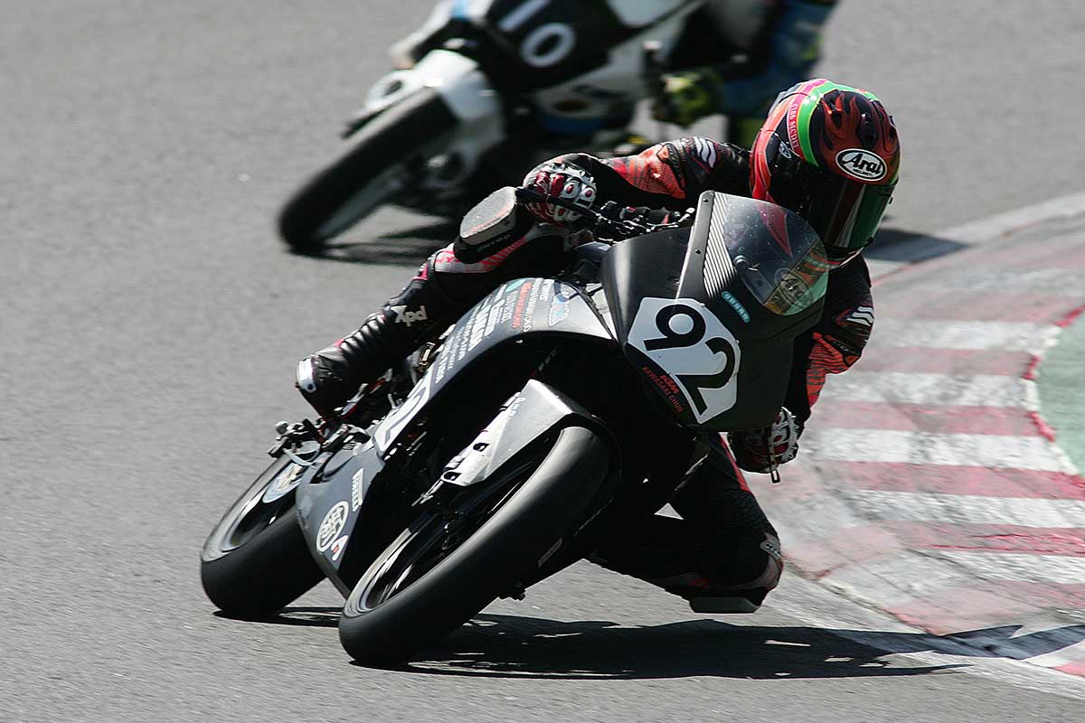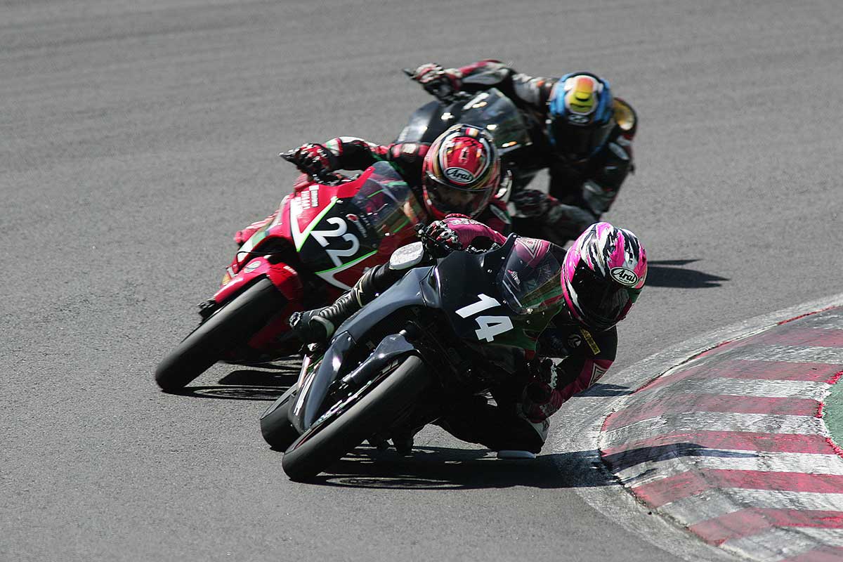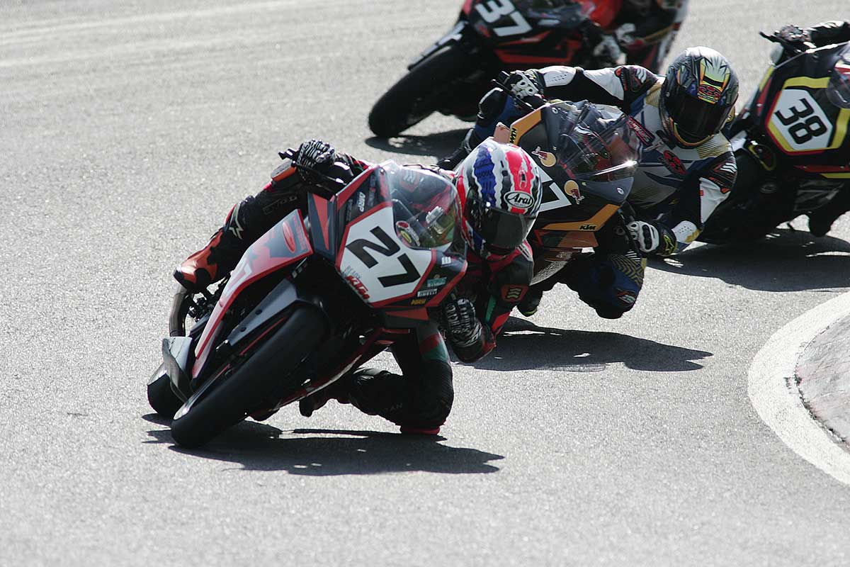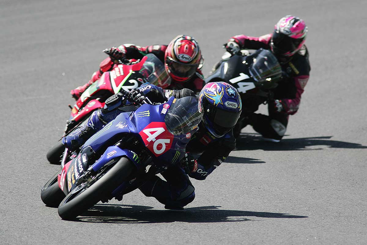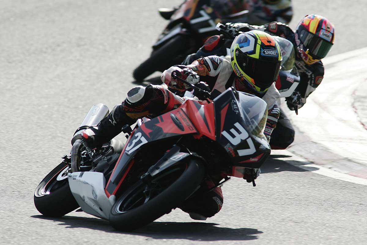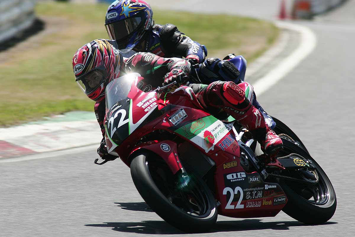 No.3近藤秀明がホールショットを決め、No.69橋本卓哉、No.60掛川啓一と続いて3名による優勝争いが始まった。序盤は4気筒の近藤がレースを引っ張っていたが、掛川は2周目に2番手へ浮上し、近藤の背後で攻略の機会を伺う。そして掛川は最終コーナーを2気筒のコンパクトなラインで旋回すると、5周目の1コーナーで近藤のインに入りトップへ浮上する。一方で近藤は旋回性で苦戦し、7周目には橋本にも前を許す。そして最終周、掛川は巧みなブロックラインで橋本を抑えて嬉しい優勝を遂げた。橋本は僅差の2位。3位の近藤はN250F優勝を手にした。No.75尾張良介が続き、5位のNo.92植村哲也はNS1優勝となった。